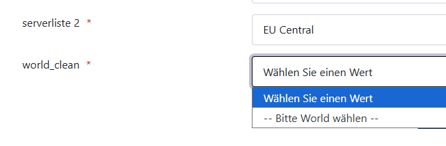 Das world_clean Dropdown wird nicht aktualisiert wenn ein Server gewählt wird