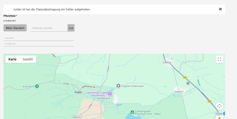 Fehlermeldung "Leider ist bei der Datenübertragung ein Fehler aufgetreten."