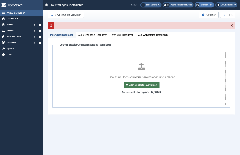 Joomla 6.0.3 mit deutschem Sprachpaket, frisch installiert.
